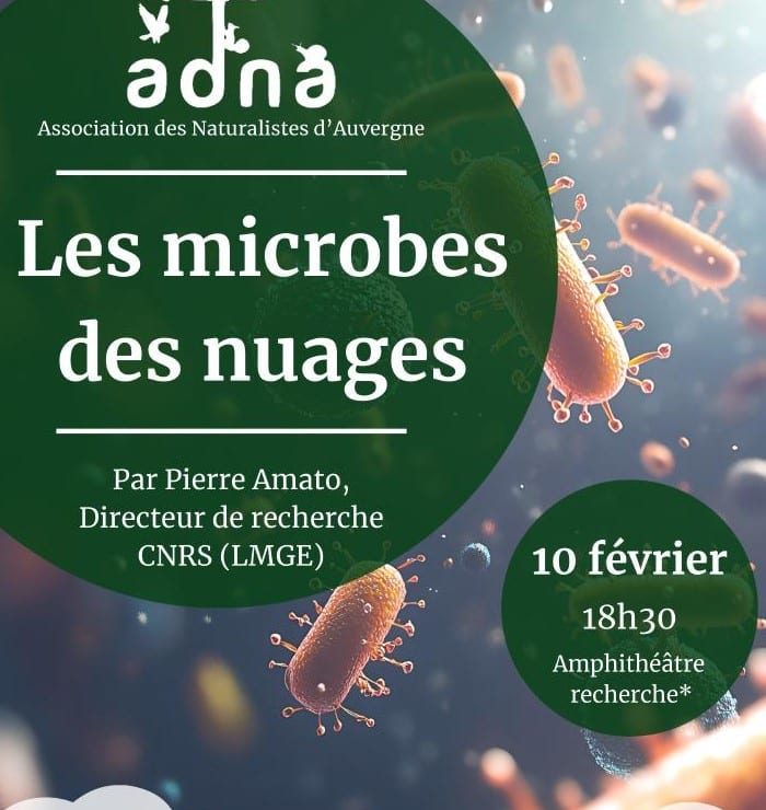 L’Association des Naturalistes d’Auvergne (ADNA), organise une conférence sur le thème ‘Les microbes des nuages’, présentée par Pierre Amato, Chargé…