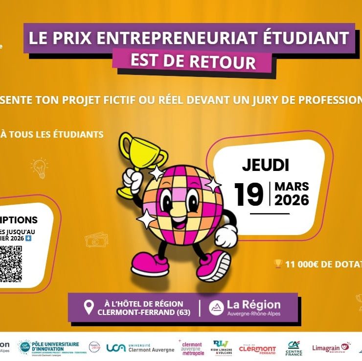 Clermont Auvergne PEPITE organise le Prix Entrepreneuriat Étudiant 2026, le jeudi 19 mars à l’Hôtel de Région à Clermont-Ferrand. Depuis…
