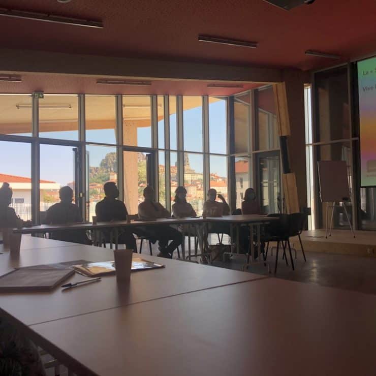 On commence en retard, pas de bol, on ne peut pas rester jusqu’à la fin. La conférence commence tout de même… avec un tour de table de présentation ! Il a fallu que je me présente… Je me sentais rougir sous mon masque, l’angoisse ! Le tour de table terminé, la conférence commence, VRAIMENT !