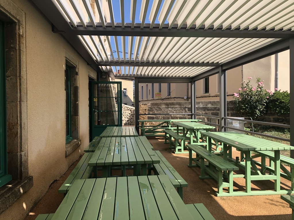 Une fois l’interview terminée, Alexis et moi avons attendu Véronique en dehors du collège. A la fin de leur entrevue, le directeur nous a fait visiter d’autres endroits, dont le réfectoire. Cet endroit m’a donné envie de retourner au collège ! Un réfectoire avec une terrasse et un endroit ‘diner’ un peu plus ‘chill’ pour les plus grands.