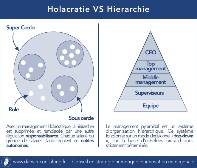 Le monde du travail est en mutation. Deux modèles d’organisation se développent parallèlement. D’un côté un management pyramidal et de l’autre, une approche plus horizontale.