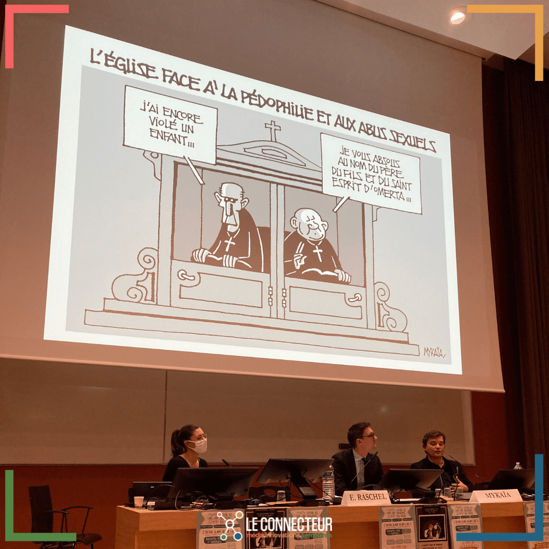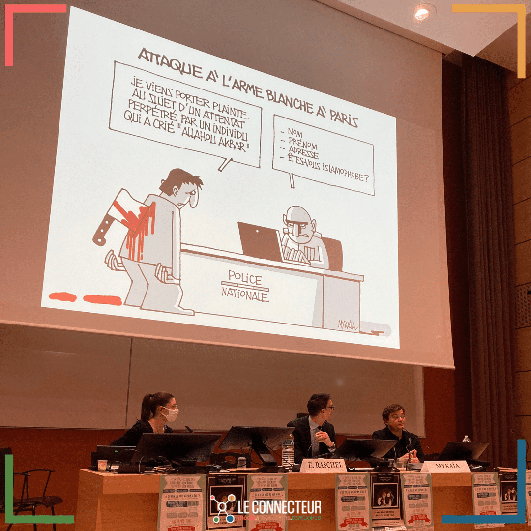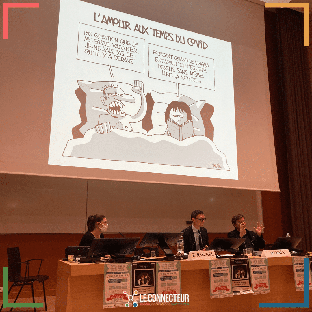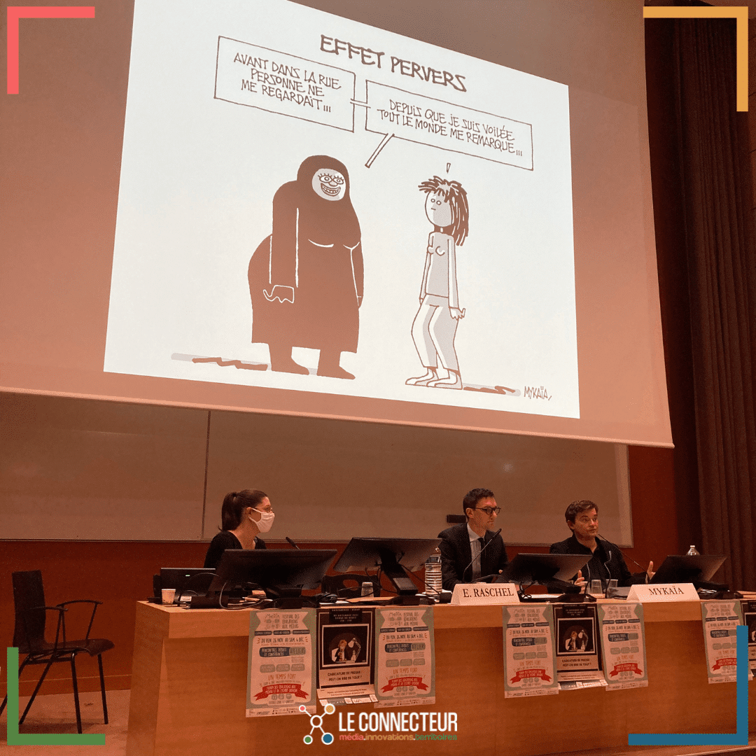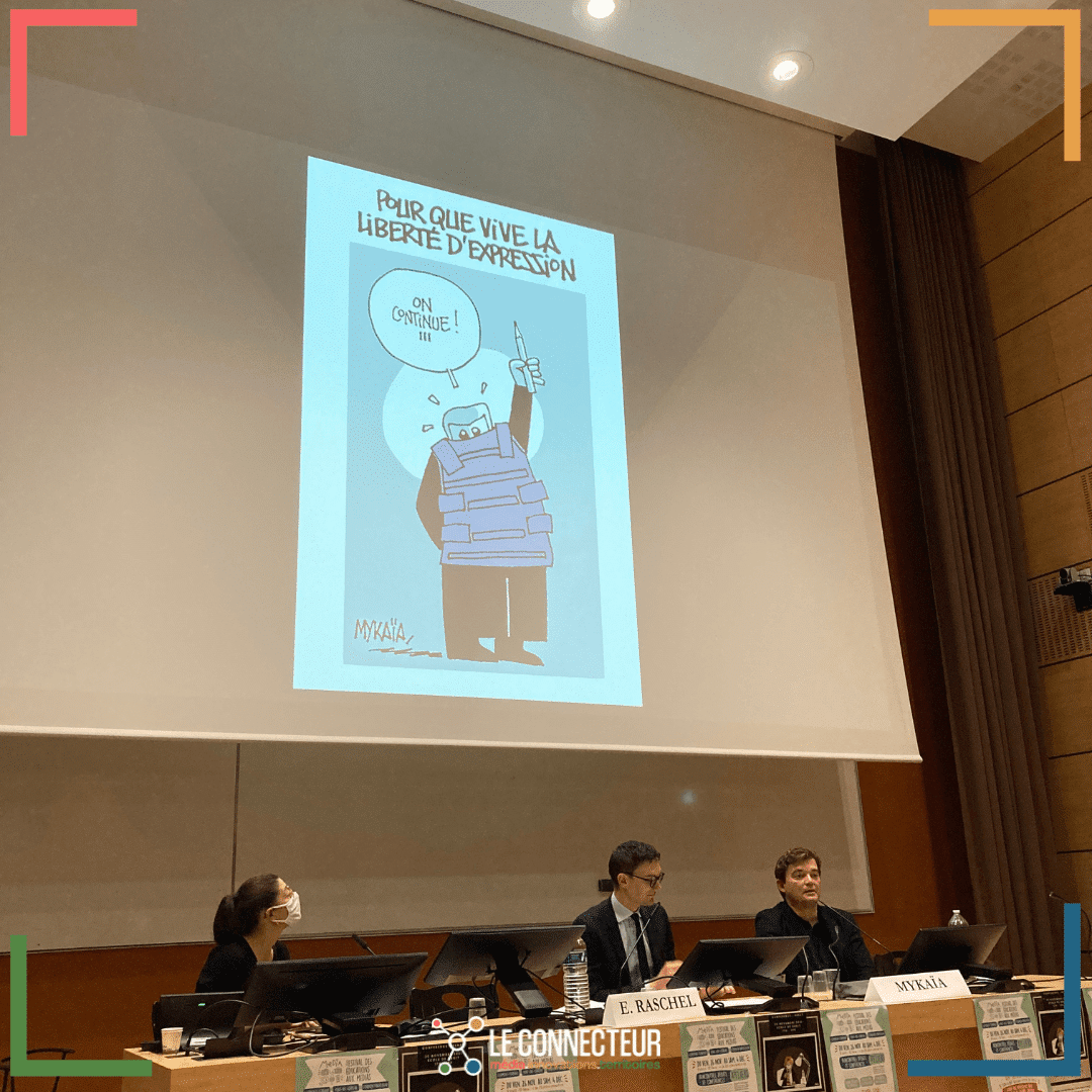 La première édition du festival Média Social Club amenait le sujet de la caricature et du dessin de presse en plein coeur du temple du Droit. Mykaïa, dessinateur et Evan Raschel, professeur de Droit, débattait autour de la question emprunté à Pierre Desproges « Peut on rire de tout ? ». Et sans spoiler le débat passionnant qui a suivi, il semble qu’ils arrivent à la même conclusion que le célèbre humoriste.