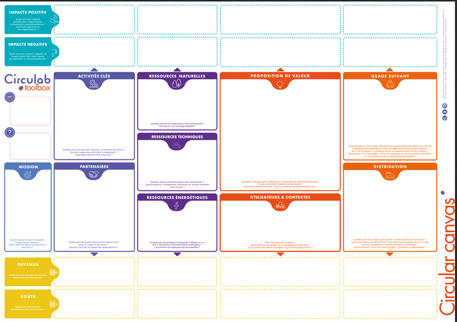 Après une séance introductive aux principes de l’économie circulaire, les membres ont pris en main certains de ses outils: Partner Map, circular canvas et value change canvas. A chaque fois, une présentation de l’outil, de son champs d’application puis une projection sur un cas concret. Et à chaque fois, le cas est tout aussi utile à celui qui l’amène qu’à ceux qui se projettent.
