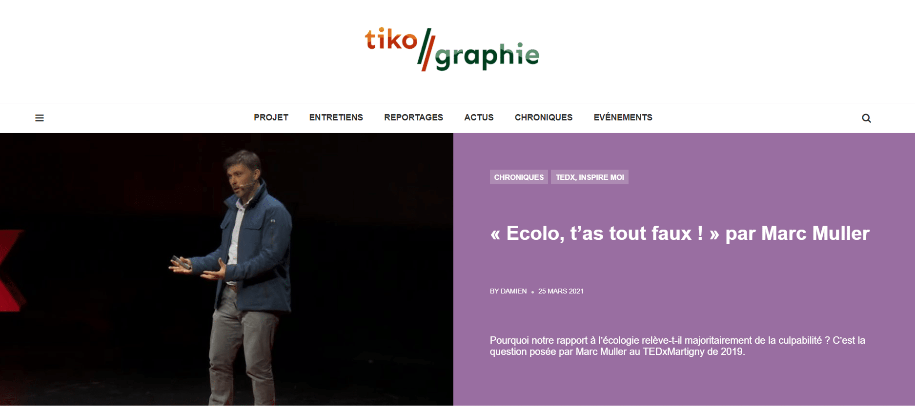 Journaliste indépendant sur les sujets de transition écologique et de résilience territoriale, Damien Caillard a créé Tikographie. Il organise également des événements en lien avec ses sujets de prédilection: des Rencontres du Climat et des serious games autour des enjeux environnementaux. Enfin, avec Sens9, il contribue à une offre d’accompagnement par du coaching de groupes et collectivités vers la transition. Il fait aussi des soufflés au citron et pratique le bilboquet à un niveau de compétition*.
