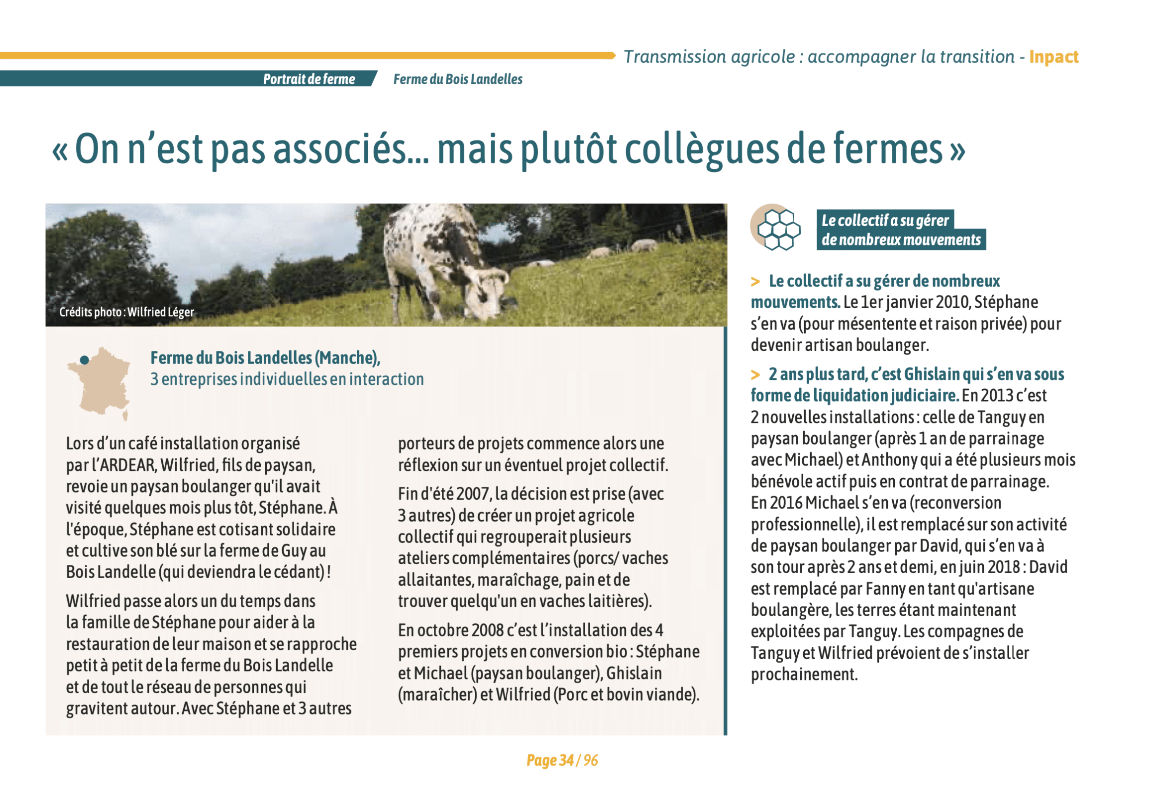 Grâce à cette approche, de modes d’organisation émergent avec des profils d’agriculteurs variés : des collectifs d’activités indépendantes, associations de grandes cultures, d’élevages et de maraichages, ou encore l’accueil de maraichers sur une ferme laitière. Elles permettent de recréer du lien avec les territoires et les différentes parties prenantes. L’agriculteur du XXIème siècle collabore, innove, réinvente.