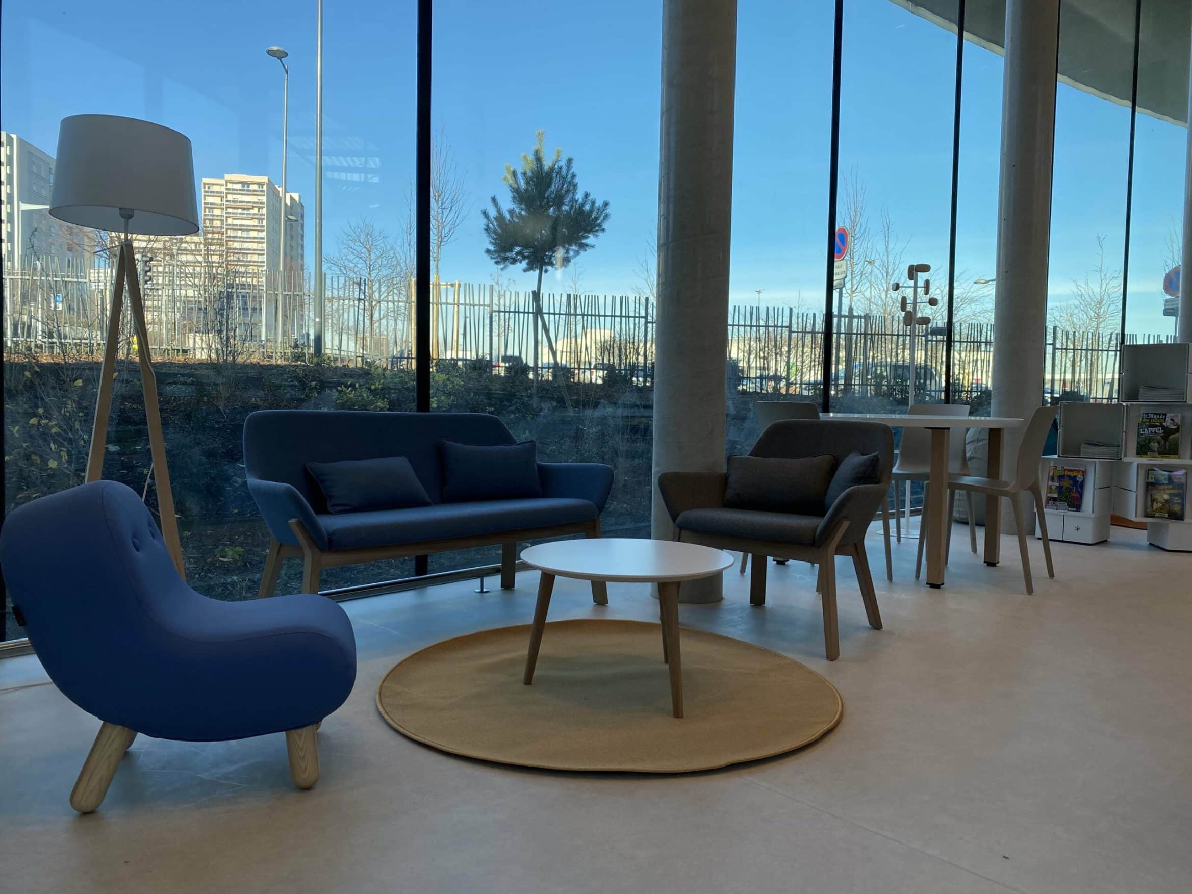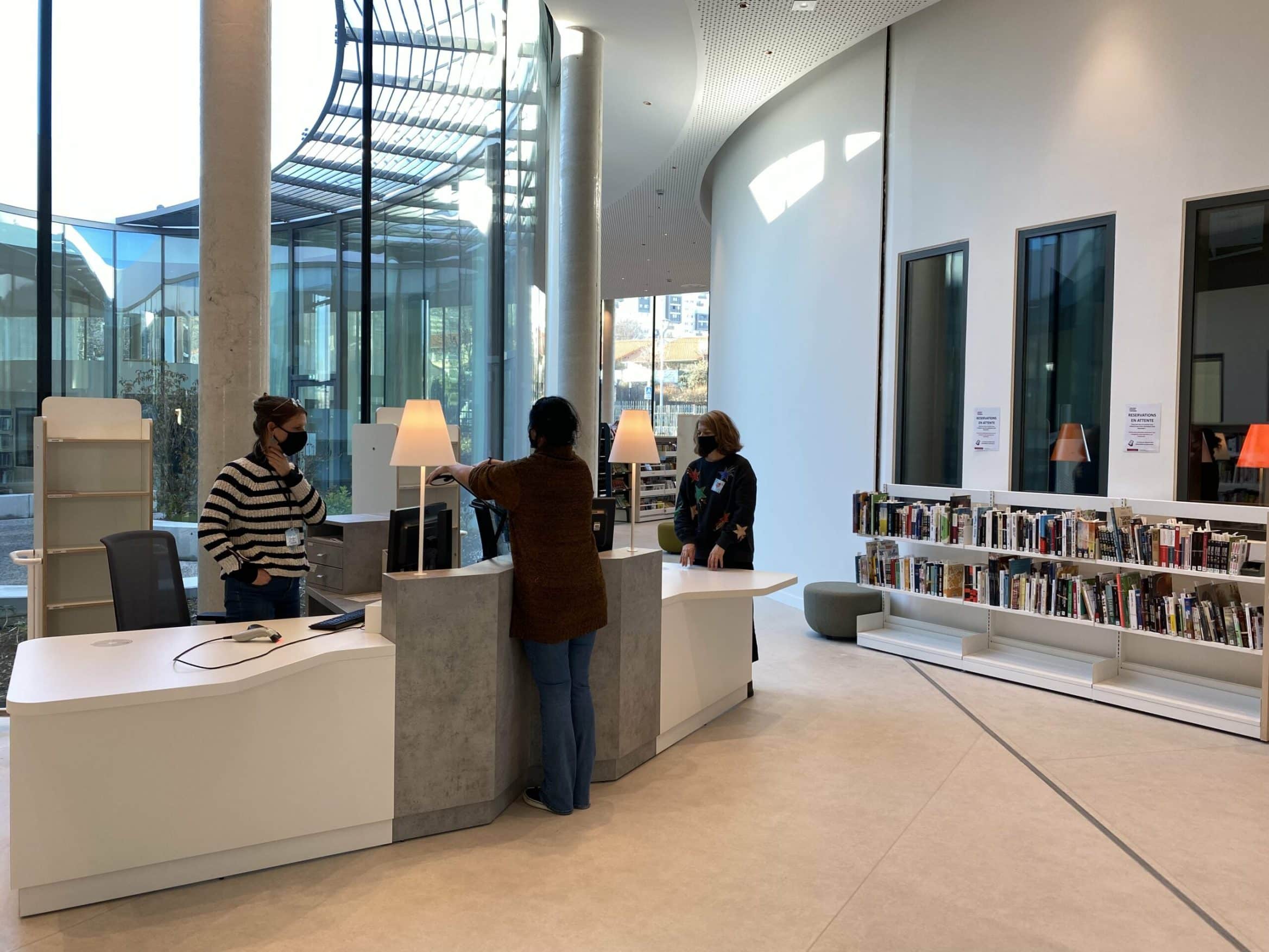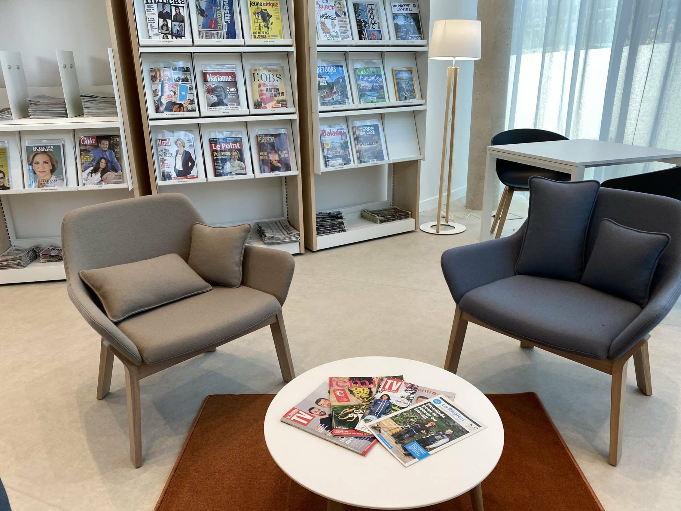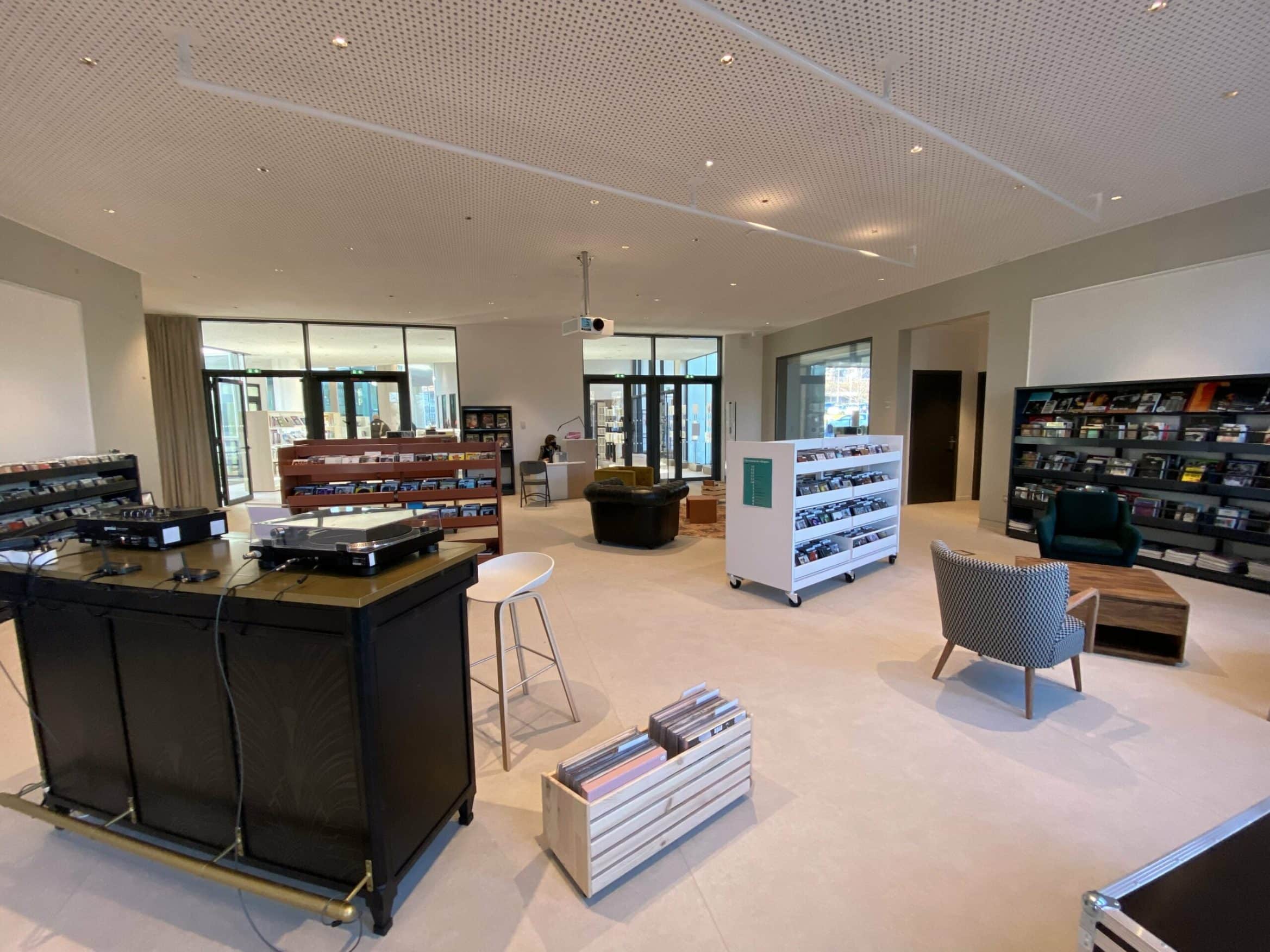 Des tables, des fauteuils, des chaises sont répartis tout autour des rayons pour encourager la lecture sur place. Le patio végétalisé extérieur situé au coeur de la médiathèque permettra aux jeunes et aux moins jeunes de profiter de l’air doux et du soleil.