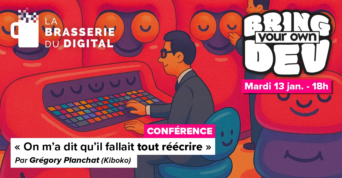 L’afterwork mensuel pensé par des développeurs pour des développeurs vous invite à son premier temps-fort de 2026 ! Au programme, une conférence suivie d’un temps d’échanges : – « On m’a dit qu’il fallait tout réécrire » Animée par Grégory Planchat (Gyroscops) Réécrire ou ne pas réécrire : telle est la question que tout développeur finit par se poser. Cette table ronde explore les raisons (bonnes ou mauvaises) qui poussent à tout repartir de zéro. Entre dette technique, ego d’équipe, et vrais besoins d’évolution, nous confronterons expériences et points de vue pour démêler le mythe du « refacto magique » de la réalité du terrain.