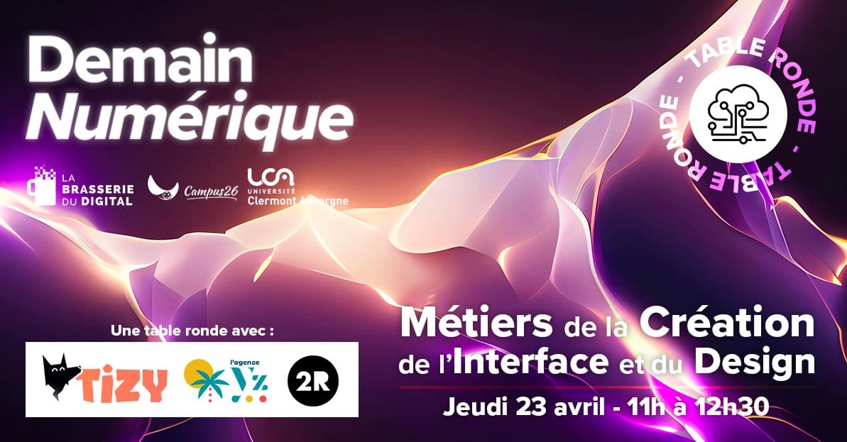 La Brasserie du Digital, en partenariat avec l’IUT du Puy-en-Velay et Campus26, propose une table ronde sur les métiers de la data et de l’intelligence artificielle dans le cadre du projet Demain Numérique. Métiers de la Création, de l’interface et du design : De quoi parle-t-on ? Jeudi 23 avril à 11h, on vous propose d’entrer dans l’univers où créativité et technologie se rencontrent Des professionnels viendront partager leur vision du métier, leurs pratiques, leurs défis à l’heure de l’IA… et la réalité du quotidien. Autour de la table, nous recevrons Maëlle Manoury Bernard (Agence YZ), Simon Mazzega (TIZY) et Rudy Rigoudy (professeur à l’IUT du Puy-en-Velay et designer). Ces créateurs et professionnels du design graphique partageront leur manière de penser un projet, de transformer une idée en expérience concrète et d’articuler créativité, usages et contraintes techniques pour donner forme à des expériences digitales cohérentes, utiles et sensibles.