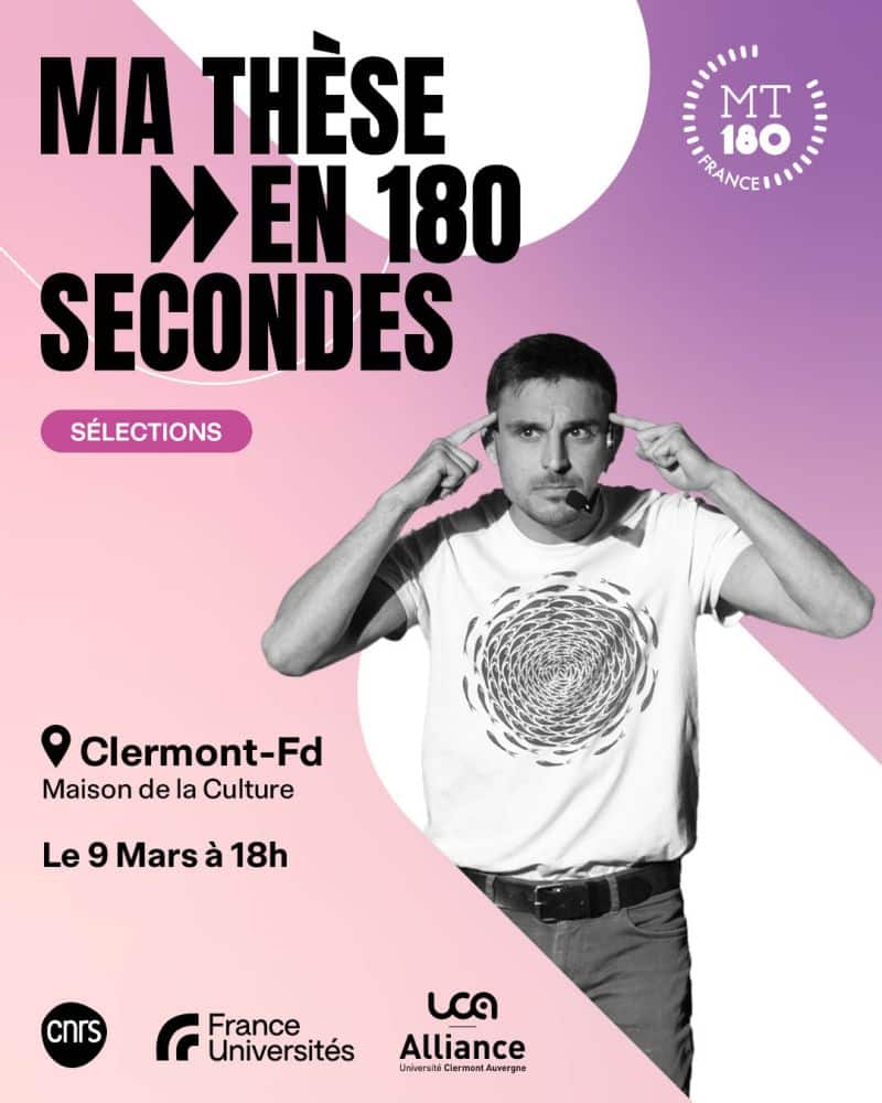 180 secondes pour convaincre. 10 doctorantes et doctorants relèvent le défi de présenter leur sujet de thèse de façon claire, percutante et accessible à toutes et tous. Une soirée pour découvrir la recherche autrement, vibrer au rythme des présentations et soutenir les talents scientifiques du territoire 📌 Ma thèse en 180 secondes permet aux doctorantes et doctorants de présenter leur sujet de recherche, en français et en termes simples, à un auditoire profane et diversifié. Chaque étudiant ou étudiante doit faire, en trois minutes, un exposé clair, concis et néanmoins convaincant sur son projet de recherche.