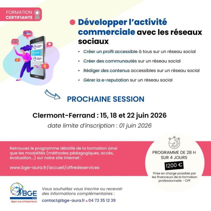 BGE AURA ouvre une nouvelle session de formation certifiante pour les entrepreneurs et chefs d’entreprise qui souhaitent gérer leurs réseaux…