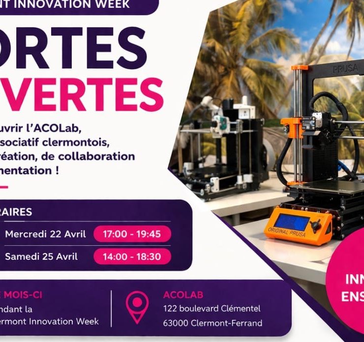 L’ACoLab participe à la Clermont Innovation Week ! Les 22 et 25 avril 2026, venez visiter notre atelier et découvrir…